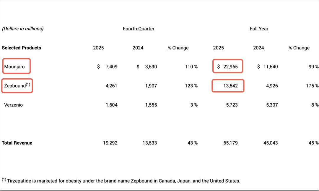 2 月 4 日,礼来公布 2025 全年财报,替尔泊肽凭借降糖版的 229.65 亿美元、减重版的 135.42 亿美元,总计约 365.07 亿美元(约合人民币 2534 亿元)的年收入,成功登顶全球药王。[1]