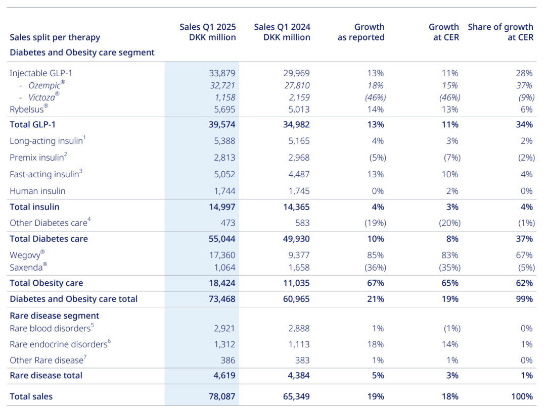 2025 年第一季度,诺和诺德公布财报,司美格鲁肽销售额达 557.76 亿丹麦克朗(约合 84.1 亿美元),正式反超 K 药的 72.05 亿美元,成功坐上全球药王宝座,并一直持续到了第二季度。[5]