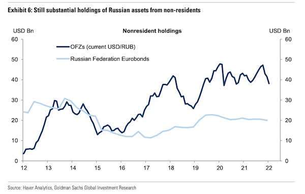 关键还在于,在没有央行支持的情况下,有多少离岸俄罗斯债券投资组合可能出现巨大损失?