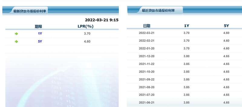中新经纬3月21日电 (董湘依)新一期贷款市场报价利率(LPR)出炉。3月21日,中国人民银行授权全国银行间同业拆借中心公布:1年期LPR为3.7%,5年期以上LPR为4.6%,均与此前持平。