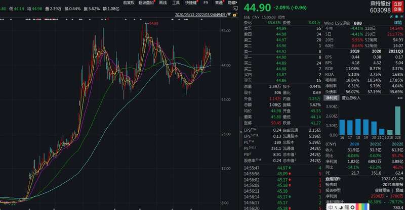 二级市场表现来看,森特股份可谓一只“大牛股”,2021年累计涨幅超过477%。