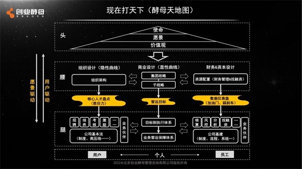 但在今天,更重要的是落地,要落到“术”的层面。我结合对几千家企业的研究,画出了腰部和腿部,也就是今人打天下,要具体做的一些事情,在师傅研究成果的基础上进行了延伸。
