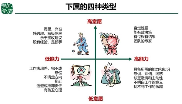 团队成员每个人的发展状况都不一样,结果也不一样。需要管理者进行分层分类进行辅导。这方面可以结合意愿度与能力的象限开展。