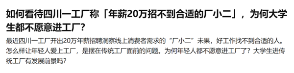 前段时间,一工厂称“年薪20万招不到年轻人”。