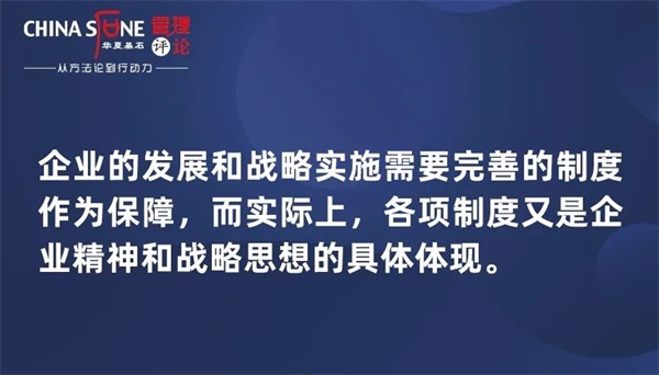 企业的发展和战略实施需要完善的制度作为保障,而实际上,各项制度又是企业精神和战略思想的具体体现。