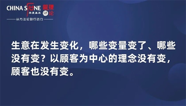 生意在发生变化,哪些变量变了、哪些没有变?以顾客为中心的理念没有变,顾客也没有变。西方管理学的厉害之处在于,发现了知识劳动者和体力劳动者的不同,而不是90后和80后的不同,所以顾客的本质没有发生变化,还是自有的需求。
