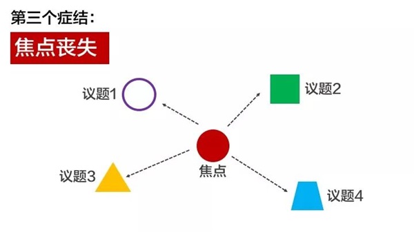 在整个思考过程中,过多相关和不相关的参与者让简单的问题复杂化。为了解决一个问题而产生了更多的问题,从而让思考丧失焦点,不知道应该先解决哪个问题。同时,缺乏有效的第三方监督来防止大家的思路发生偏移。