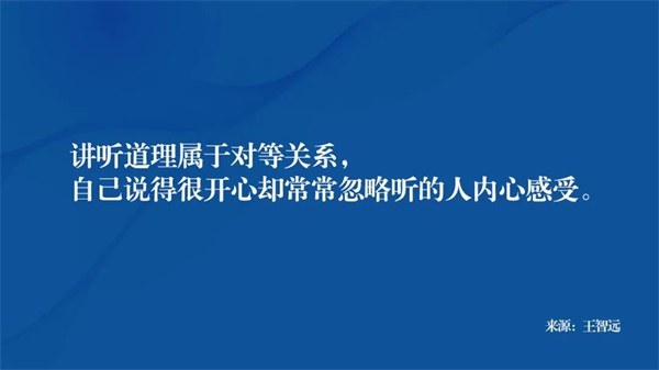 让别人接受的道理,不是通过自己的口吻或者某些权威口中所强调的真理,或“不听我的建议就会吃亏的说教”,而是让对方理解你说的目的是为了自己更好的前提下,去把这个道理让对方体验,而非强行灌输。
