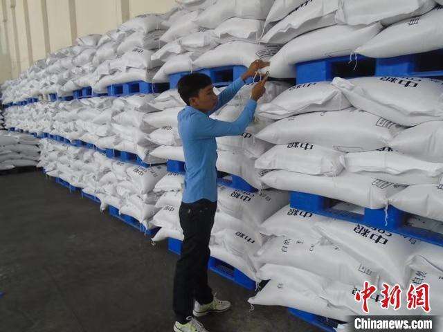资料图:CCIC柬埔寨公司检验员在大米加工厂检验大米。 公司供图