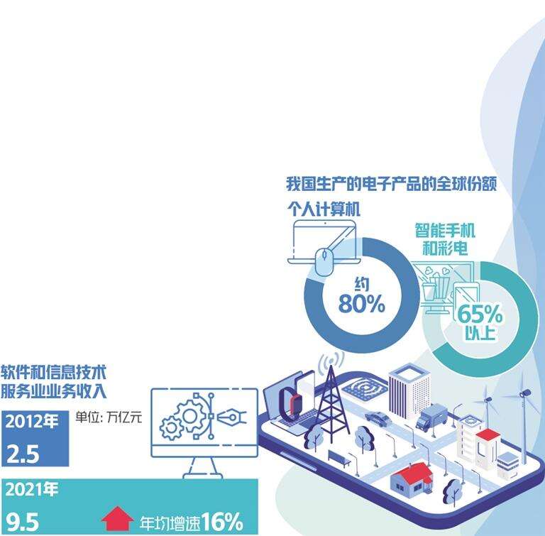 经济日报北京9月21日讯(记者黄鑫)在工业和信息化部20日举行的“大力发展新一代信息技术产业”主题新闻发布会上,工信部电子信息司司长乔跃山介绍,从2012年到2021年,我国电子信息制造业增加值年均增速达11.6%,营业收入从7万亿元增长至14.1万亿元,在工业中的营业收入占比已连续9年保持第一;利润总额达8283亿元。软件和信息技术服务业业务收入从2.5万亿元增长至9.5万亿元,年均增速达16%,增速位居国民经济各行业前列。