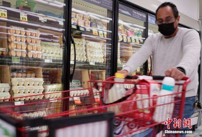资料图:一名顾客从美国加州圣马特奥县一家超市的鸡蛋货柜前经过。 中新社记者 刘关关 摄
