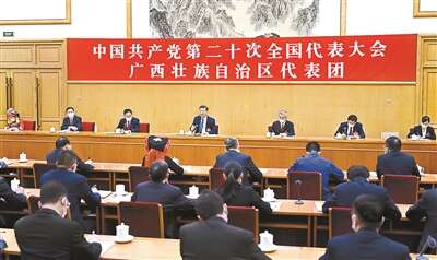 10月17日,习近平同志参加党的二十大广西代表团讨论 供图/新华社