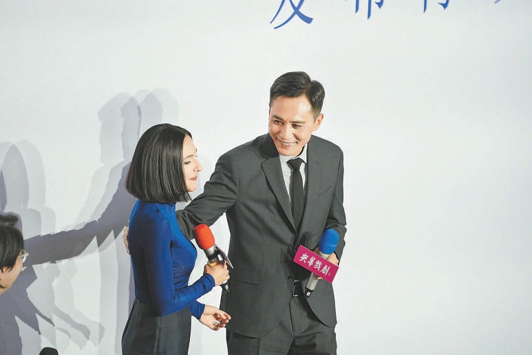 刘烨和担任制作人的妻子安娜在央华年度大戏《悲惨世界》发布会现场。记者 方非摄