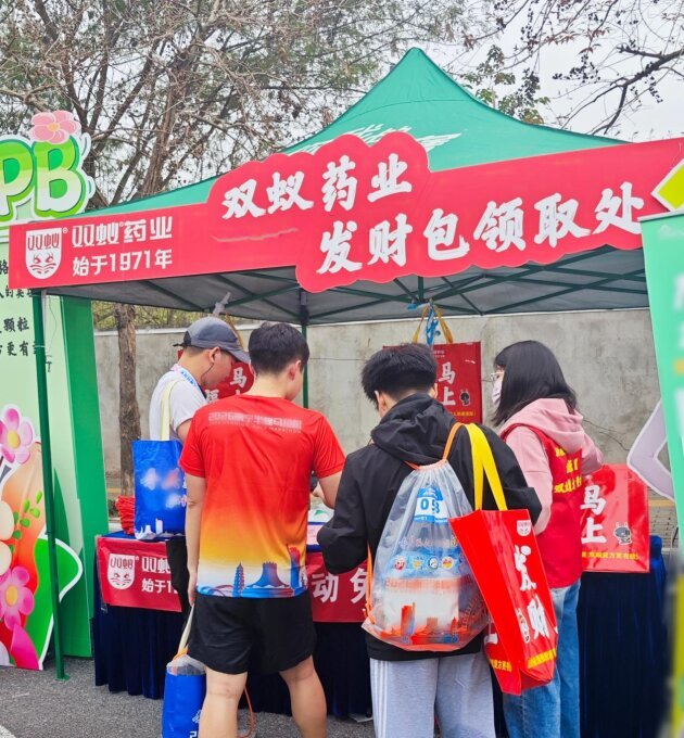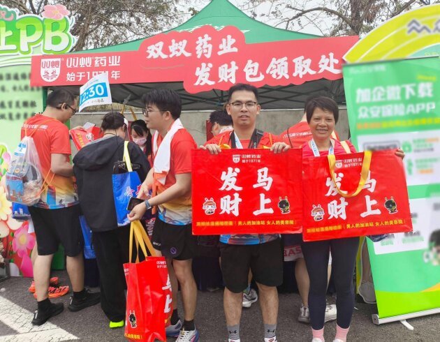 在南宁半程马拉松领物现场,双蚁药业精心准备的“马上发财”显眼包一经亮相便备受追捧,寓意吉祥的文创好物兼具实用性与美好祝福,吸引众多参赛选手、市民驻足参与,现场人气爆棚、氛围热烈。这一暖心举措,不仅拉近了企业与大众的距离,更传递出双蚁药业关爱民生、传递美好的品牌温度。