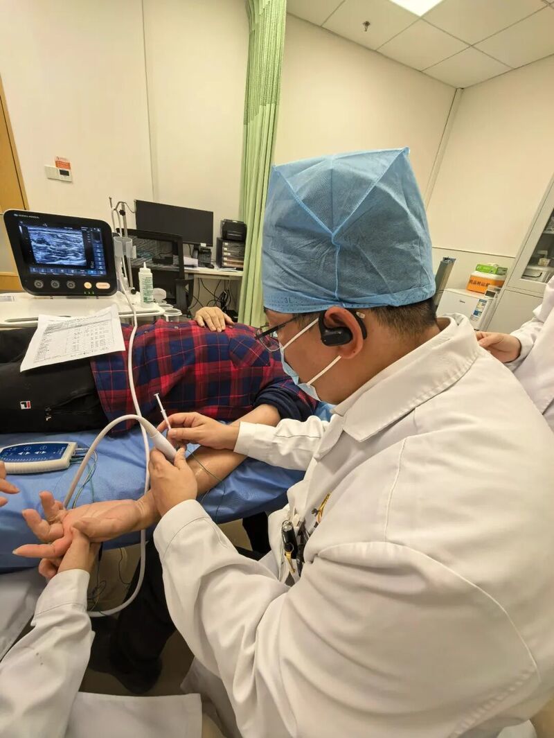 图注:上海市养志康复医院靳令经教授为首例受试者进行注射