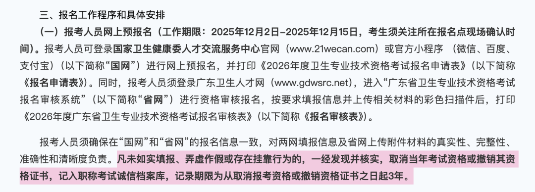 流传最为广泛,也被称为最严厉的,是 12 月 5 日广州市卫健委发布的《广州考点关于 2026 年度卫生专业技术资格考试报名工作安排的公告》,公告中明确规定了社保凭证成为现场报名审核的必需资料。